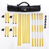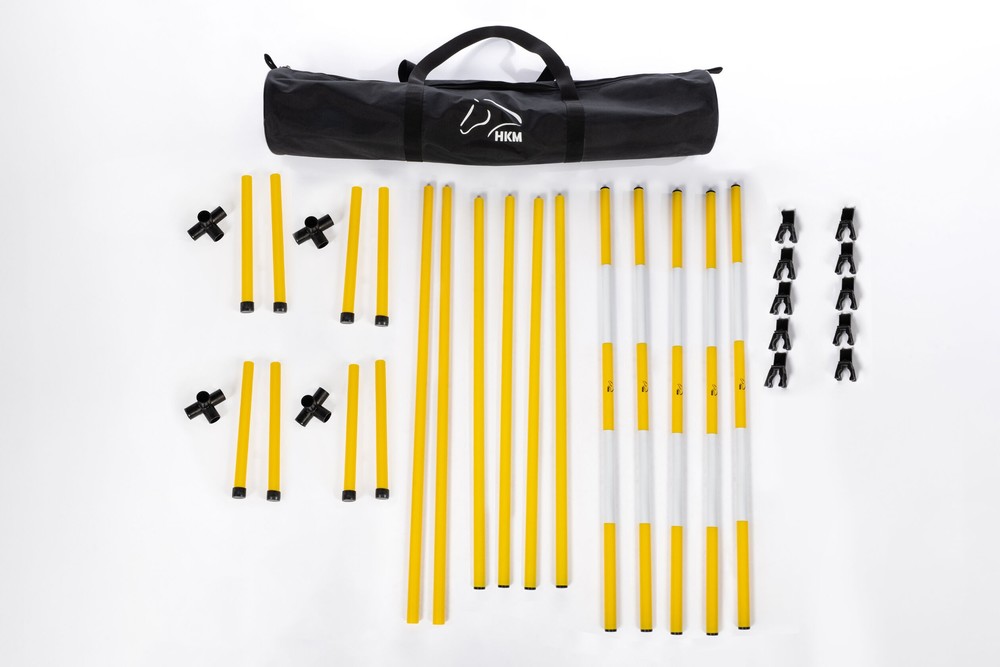 Hobby Horsing-forhindringerne bringer stævnefølelsen hjem! Det farverige sæt indeholder to spring og fem bomme, der kan sættes op på en række forskellige måder. Takket være den praktiske transporttaske pakkes sættet hurtigt og er nemt at tage med – perfekt til ethvert kæpheste eventyr! Uanset om du er alene eller sammen med venner, inviterer springsættet dig til at lege kreativt og bringer spændende turneringssituationer til live. Spring bommene kan falde på begge sider lavet i plastik Med praktisk transporttaske Sæt med to spring og 5 springstænger Mål: 110 x 67 x 95 cm opfylder de europæiske prøvningskrav i legetøjsretningslinjerne Aldersanbefaling: ikke egnet til børn under 36 måneder