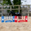 Bommerne falder, hvis de bliver ramt præcis som ved et rigtigt stævne!