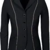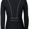 ?Støvnejakke med knaplukning og lynlås bagpå, to lommer med lynlås, champagnefarvede pipes og EQS-logoet84? ?% Nylon / 16% Elastan?