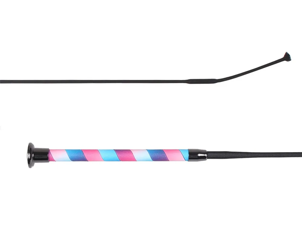 Munter dressurpisk med ombre farvet imiteret læderhåndtag