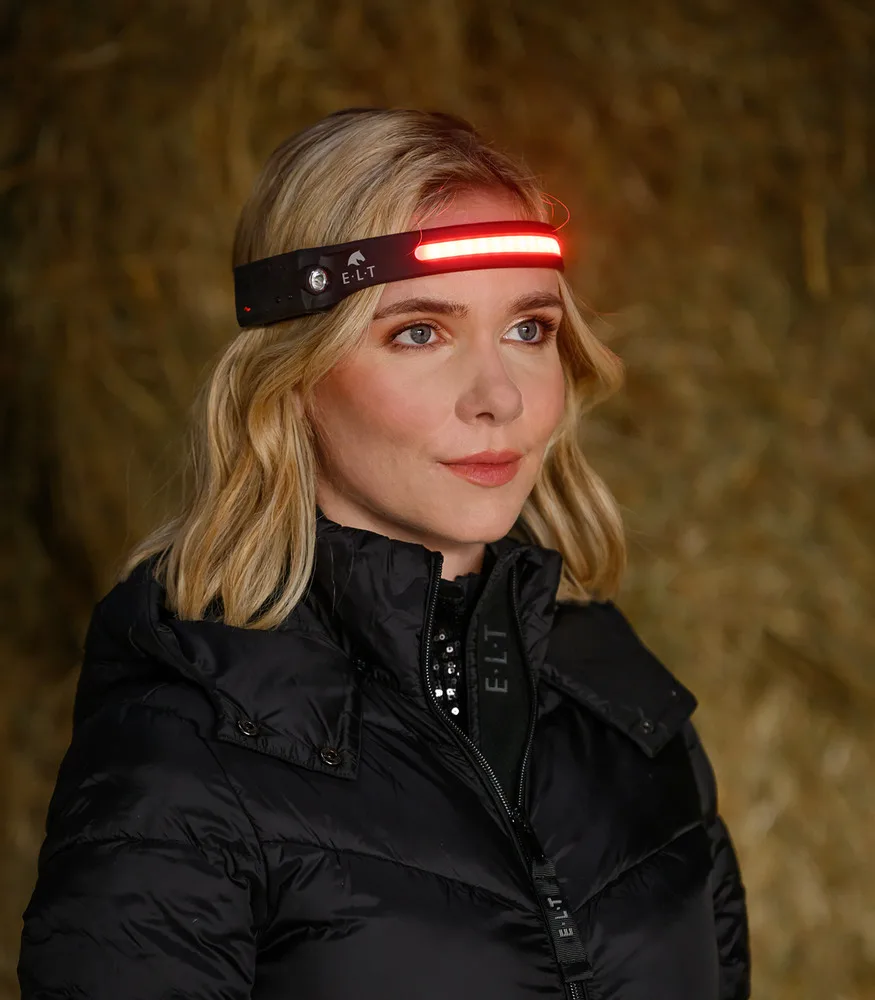 – Elastisk, størrelsesjusterbart hovedbånd, også kompatibel med en ridehjelm