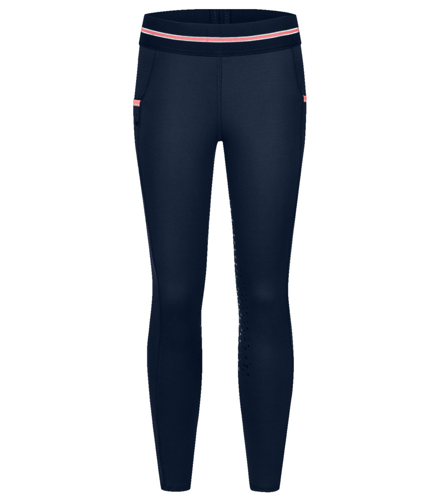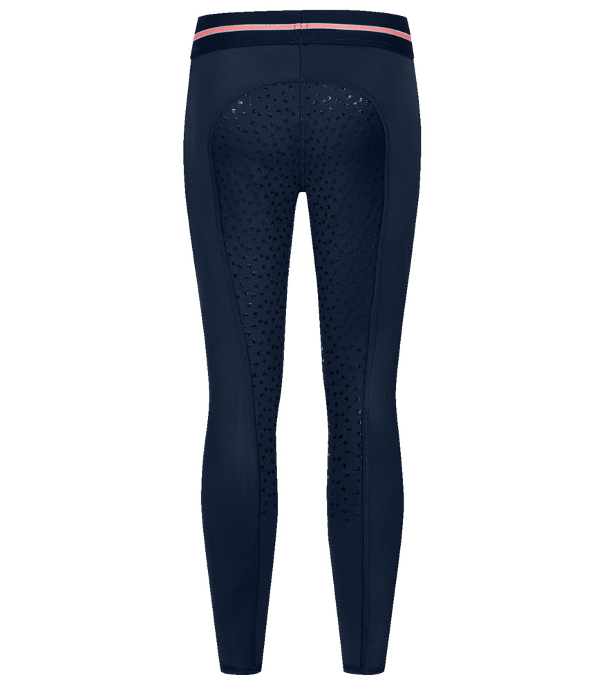 Rideleggings med dekorative glittermanchetter – Elastisk manchet – Praktisk snøre til størrelsesjustering – Elastisk linning med glitterindsats – Fuld Silikone – Bi-elastisk – Åndbar – 2 mobiltelefonlommer med glitterkanttape og silikoneprint – Glitter logo print på fronten Materiale: 90% polyester, 10% spandex