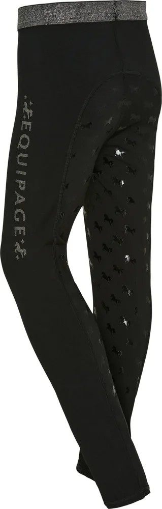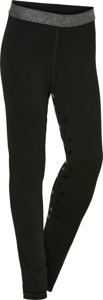Ridetights med elastik i taljen med sølvfarvet lurextråd Tone i tone greb print med enhjørninger Stort logo-glitterprint på venstre ben Super strækbar kvalitet