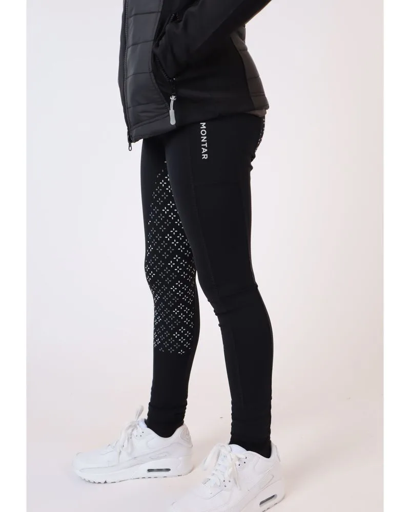 Selena junior highwaist ridetights er skabt i vores populære og funktionelle letvægtigere kvalitet som holder formen og stadig giver optimal støtte i sadlen. Disse letvægtige tights er meget elastiske, som let følger kroppens bevægelser. Selena ridetights er ikke kun funktionelle, men også utrolig smukke med et grafisk silikoneprint i skiftende nuancer. Et godt bud på dine nye junior yndlingstights. 82% polyamide, 18 % elastane. Pull on ridetights Høj talje. Silikone fuldgrip Stor fleksibilitet og høj komfort Åndbare