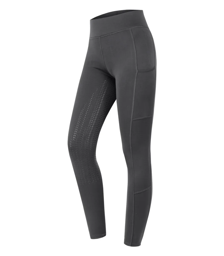 – Rideleggings – Silikone fuldt sæde – Åndbar – Bi-elastisk – Bæltestropper- Slide-in lomme til mobiltelefon – Logo i dekorative rhinsten Anbefaling: bestil en størrelse mindre (kvinders størrelser). 90% polyester, 10% elastan Polyester-elastan strik, bi-elastisk og åndbar. Materialet er behageligt let, men stadig uigennemsigtigt. Materiale: 90% polyester, 10% elastan