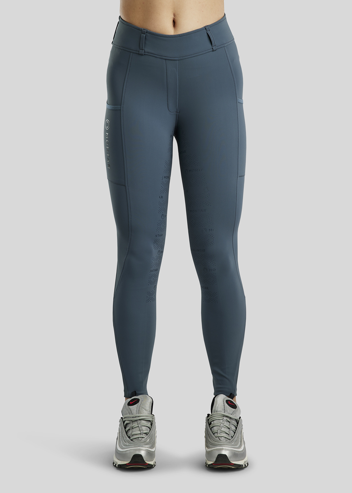 MoMichelle Pull-On er skabt til rytteren, der ønsker en perfekt balance mellem stil og funktionalitet. Disse ridebukser leverer et sofistikeret look kombineret med enestående komfort og ydeevne. Elegant Design: På mobillommen et Montar-logo med gun metal krystaller, der giver et stilfuldt og eksklusivt udtryk. Materiale: Ydersiden er fremstillet af en slidstærk og fleksibel blanding af 78% polyamid og 22% elastan, mens indersiden består af 92% polyester og 8% elastan. Denne kombination sikrer optimal komfort og en åndbar og blød fornemmelse mod huden. Komfort og Pasform: Med deres fleksible pull-on-design og tætsiddende pasform er bukserne nemme at tage på og giver maksimal bevægelsesfrihed. Fuldgrippen sikrer stabilitet og kontrol i sadlen. Funktionalitet: MoMichelle med Gun Metal Logo Print er skabt til at yde hele dagen fra rideskolen til stævnepladsen, uden at gå på kompromis med komfort eller stil. MoMichelle med Gun Metal Logo Print er ridebukser, der kombinerer luksus og ydeevne, hvilket gør dem til et must-have for rytteren, der vil have det bedste inden for ridetøj.