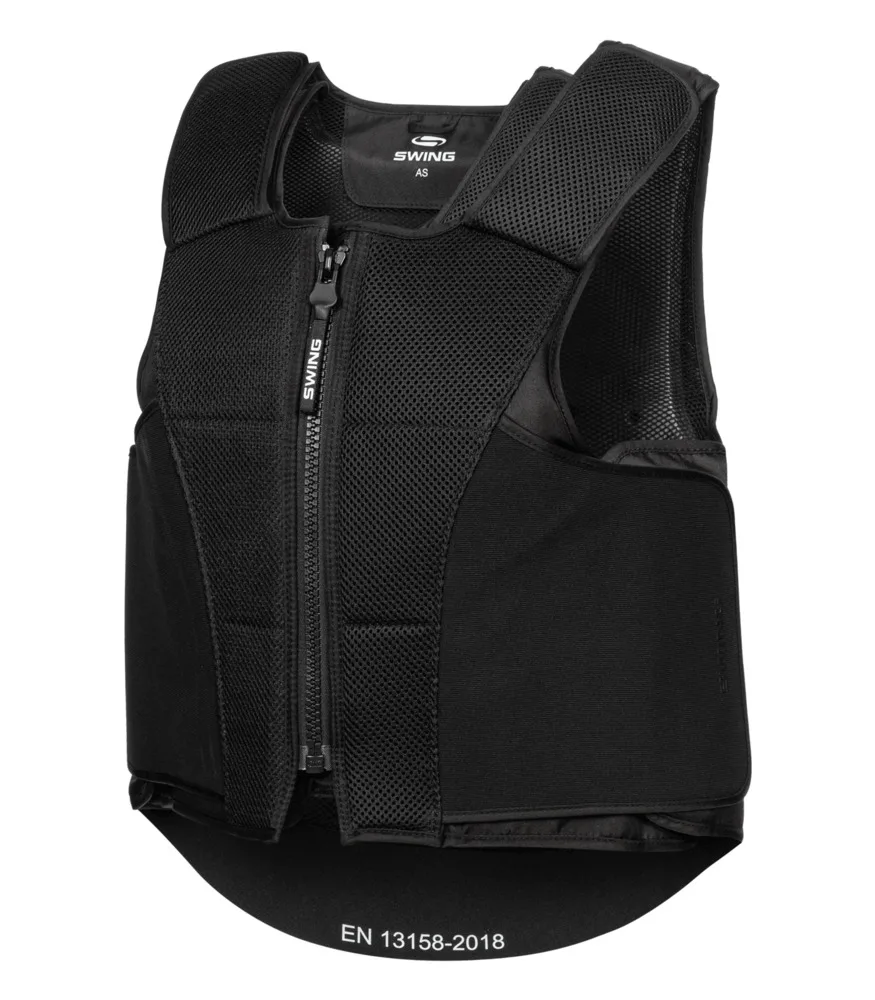 Swing P24 Max kropsbeskyttelse en sikkerhedsvest, der sætter nye standarder inden for ridesport. Den overholder de højeste sikkerhedsstandarder i EN 13158:2018 niveau 3 og BETA Standard 3 og tilbyder omfattende 360° allround-beskyttelse for ultimativ sikkerhed. Med et 4-lags SWING-Flex beskyttelsespanel på kun 20 mm tykkelse er denne vest ikke kun bemærkelsesværdigt tynd, men også fremragende ventileret, så den kan tilpasse sig perfekt til rytterens bevægelser. Det forbedrede ergonomiske snit og velcrolukninger i siden garanterer en optimal pasform, der tilpasser sig perfekt til kroppen. Det elastiske, lette og åndbare stof sikrer maksimal komfort, så rytterne kan koncentrere sig fuldt ud om deres præstationer. Lynlåsen foran med SWING Safety Puller muliggør ubesværet åbning og lukning, selv i nødstilfælde eller ved brug af handsker. CMZ-lynlåsen af høj kvalitet gør den nem at tage af og på. Derudover er beskytterne i side- og rygområdet aftagelige for at sikre nem rengøring og pleje. SWING P24 Max kropsbeskyttelse er det ideelle valg til ryttere, der har brug for maksimal beskyttelse og ubegrænset bevægelsesfrihed uanset om det er i marken eller under daglig træning. Oplev friheden ved at køre med en vest, der kombinerer sikkerhed og alsidighed. – Vores sikreste med 360° allround beskyttelse – EN 13158:2018 niveau 3 – BETA standard 3 – 4-lags SWING-Flex beskyttelsespanel – Kun 20 mm tykt – Forbedret ergonomisk snit – Elastisk, let og åndbart stof for maksimal komfort – SWING sikkerhedstrækker – YKK-lynlås af høj kvalitetSWING kropsbeskyttere beskytter din krop uden at forringe fornøjelsen ved at køre. Brug af højteknologiske materialer sikrer maksimal bevægelsesfrihed.