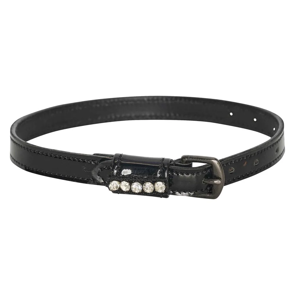 Børn sporeremme med Rhinsten og et godt blikfang på enhver støvle. Læderremmen er belagt med et skinnende lag, Spændet i rustfrit stål matcher stenfarverne. Hold dine fødder funklende! Længde: 16 tommer/40,64cm