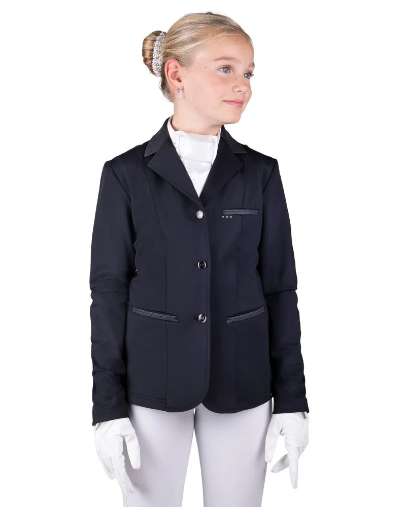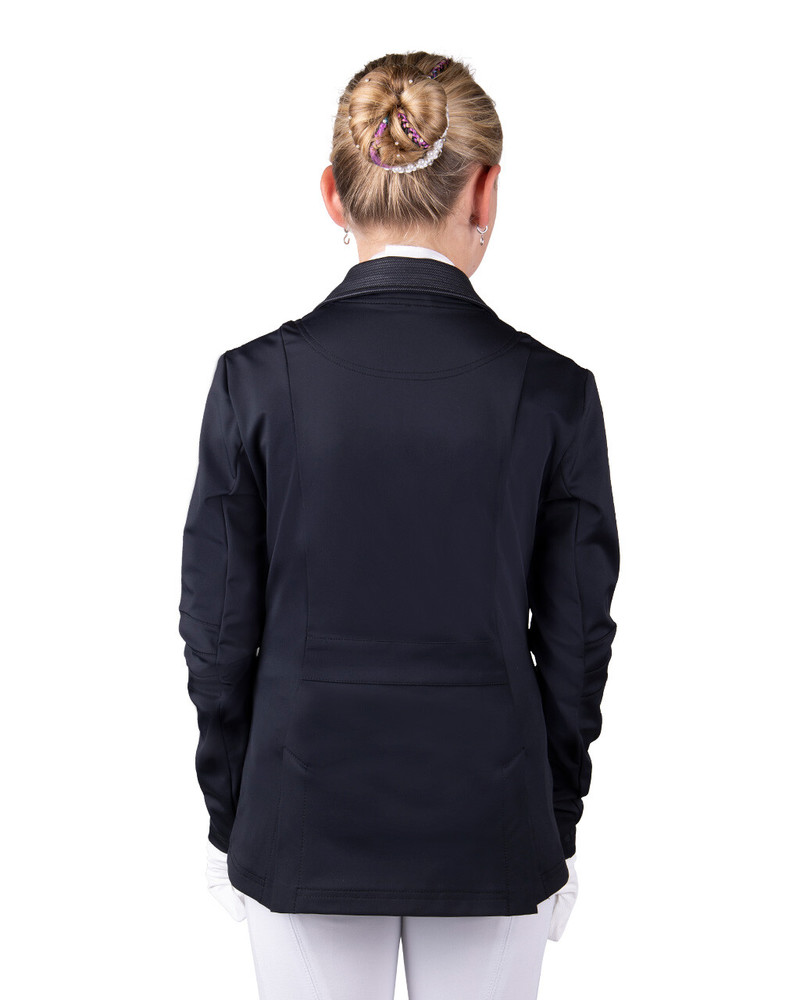Kan du se dig selv optræde i denne smarte stævnejakke? Følg tendenserne og grib chancen. Kae stævneejakken har et diskret print på lommerne og kraven. Jakken har et professionelt look takket være splittelsen på ryggen og de luksuriøse Q-knapper foran. Modellerne på studiebillederne er 140 cm høje og bruger størrelse 146. Stofsammensætning: 86% nylon, 14% elastan Chic konkurrencejakke Lavet af et åndbart 4-vejs stretchstof softshell-stof Luksussplit på bagsiden Q-knapper på forsiden Tre diamanter på højre bryst En del af Kae kollektionen Kan maskinvaskes ved 30 grader. Vask stævneejakken i en vaskepose. Brug ikke skyllemiddel og må ikke tørretumbles