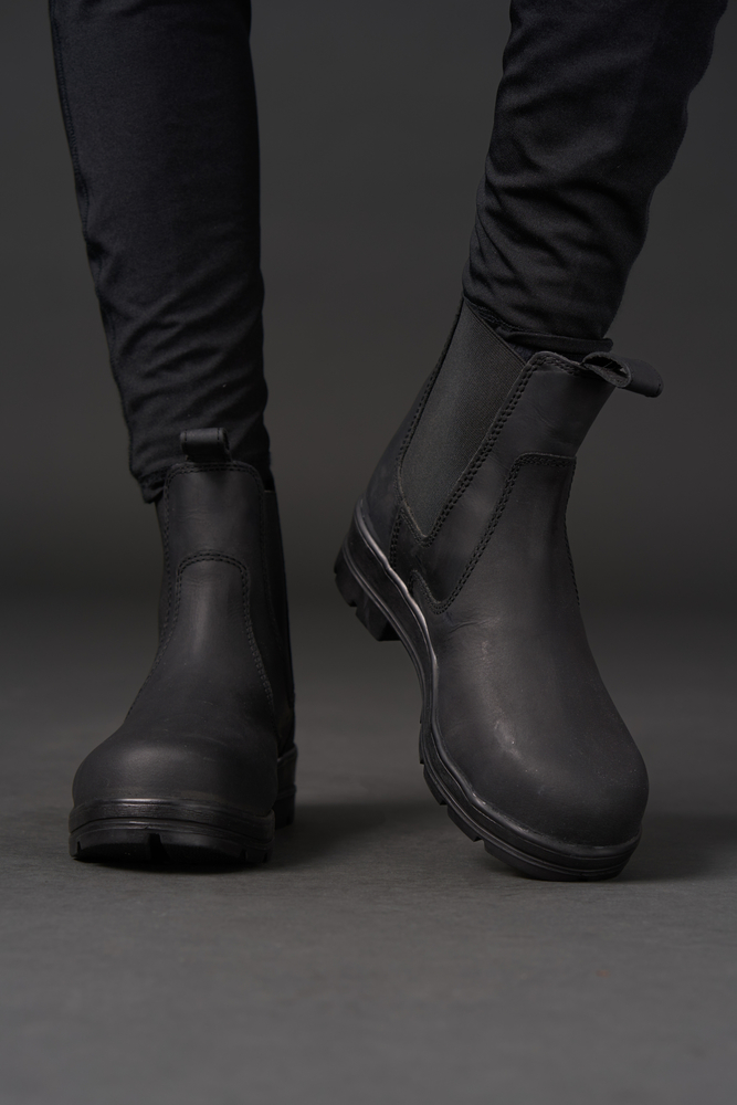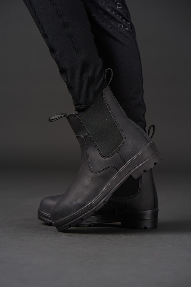 Sikkerhedsjodhpur med ståltå og skaft. Nubuck læder og fugttransporterende foring. Blød indersål og ydersål, egnet til ridning. Stærk elastik. CE 20345 godkendt
